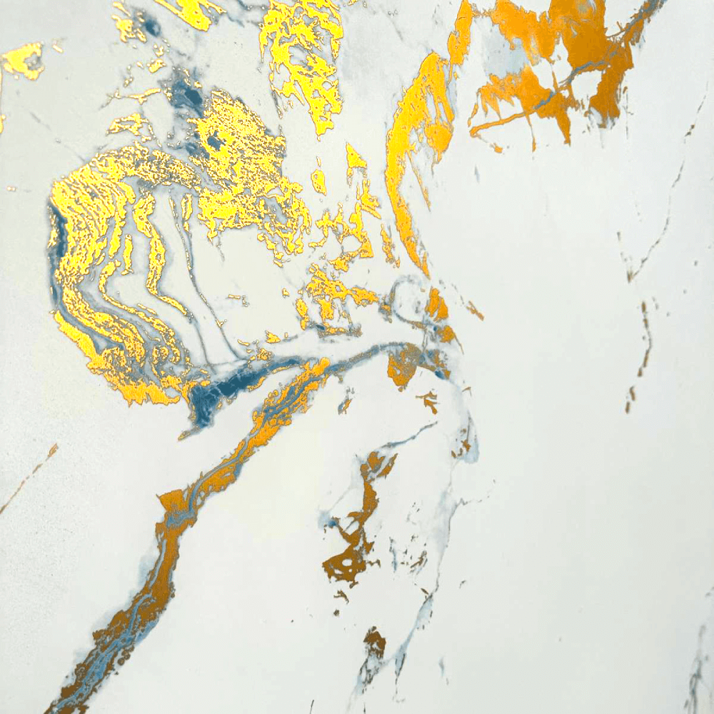 - Markante Marmoroptik : Wirbel aus Gold-, Blau- und rauchigen Neutraltönen imitieren luxuriösen Stein mit künstlerischer Tiefe.