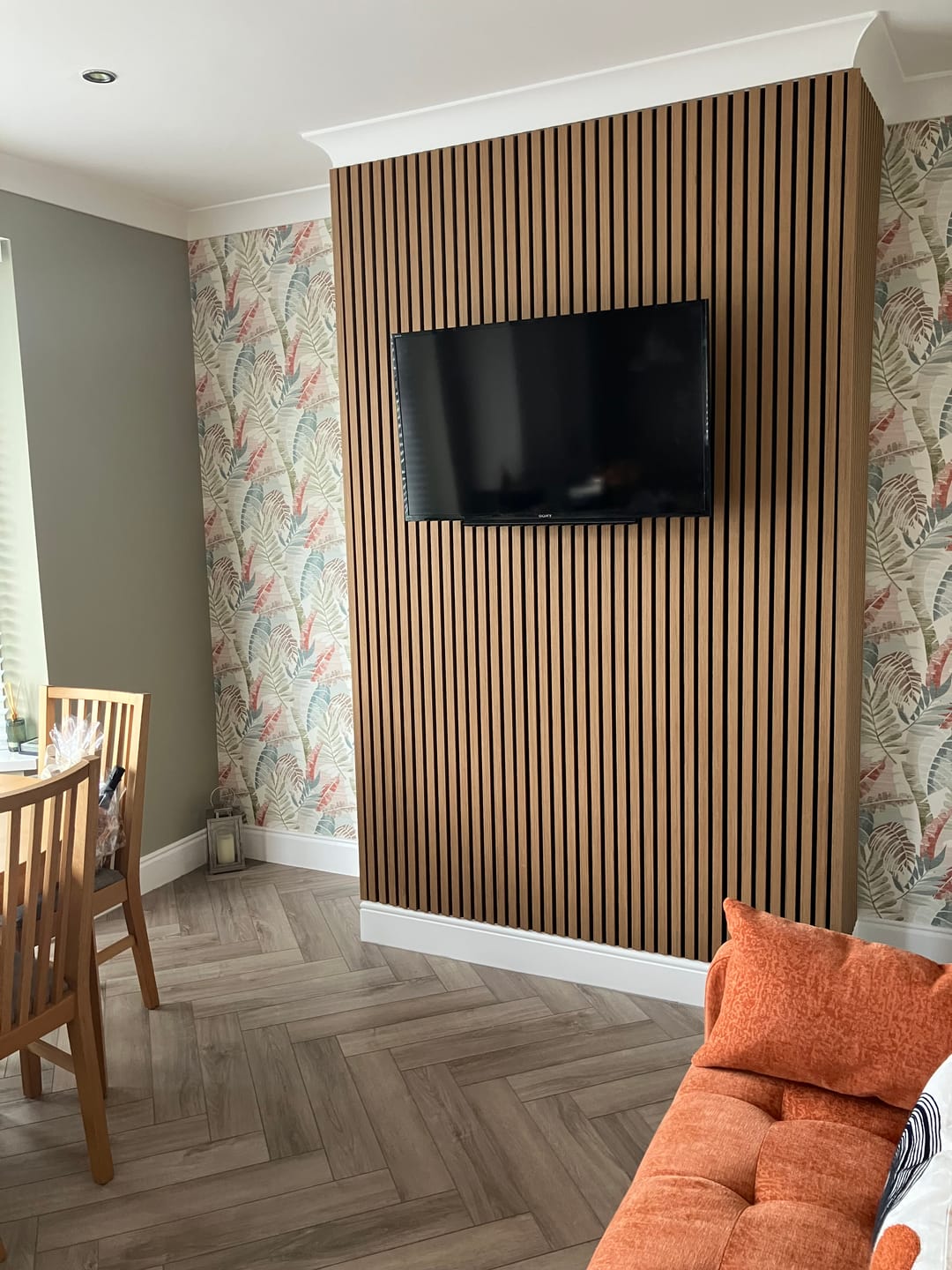 Unsere Akustikwandpaneele aus natürlicher Eiche vereinen elegantes Design mit hervorragender Akustik und sind somit eine intelligente und stilvolle Lösung für Wohn- und Geschäftsräume.